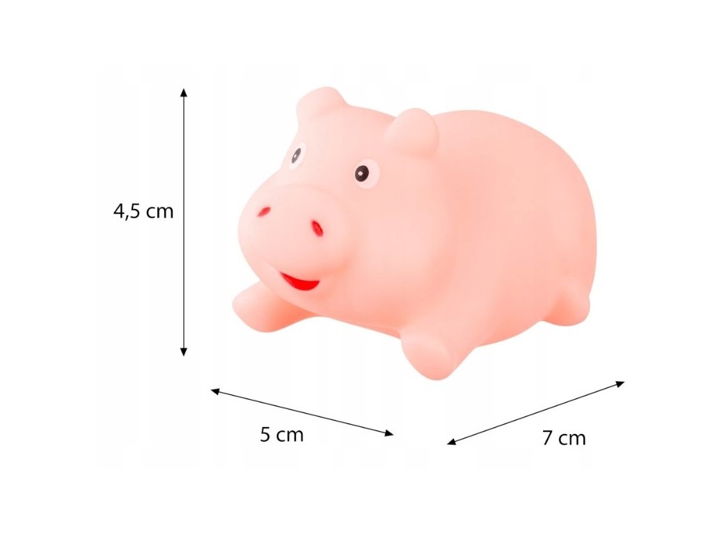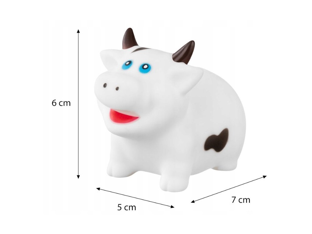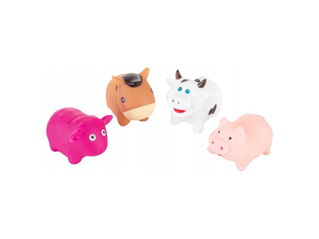 Sada obsahuje 4 gumové hračky, se kterými bude koupání velká zábava -kravička, prasátko, koník, ovečka.