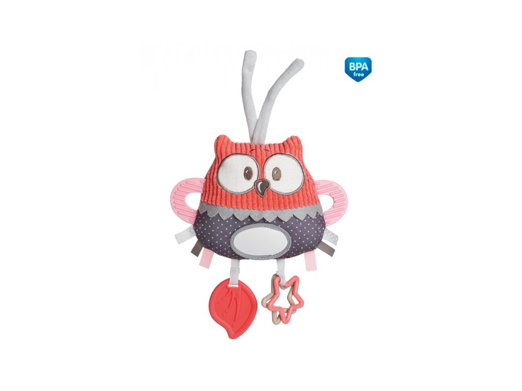 Plyšová hračka stimuluje rozvoj smyslů dítěte. Lze zavěsit na postýlku, kočárek nebo autosedačku.