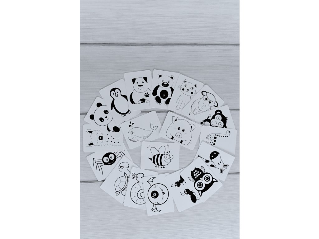 Set 15 jedinečných kartiček obsahuje tyto motivy:pejsek, kočička, tučňák, panda, opička, šnek, včelka, pavouček, prasátko, mravenci, ptáček, ovečka, lama, dinosaurus a velryba.